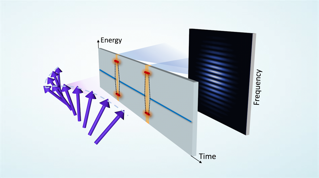 1:示意图。本工作利用时间狭缝实现对磁子强耦合态的相干调控,形成时间双缝衍射现象。